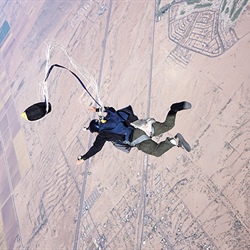 Stokes also represents the sport by performing demonstration jumps as a member of Team Fastrax, bringing skydiving to public events nationwide.