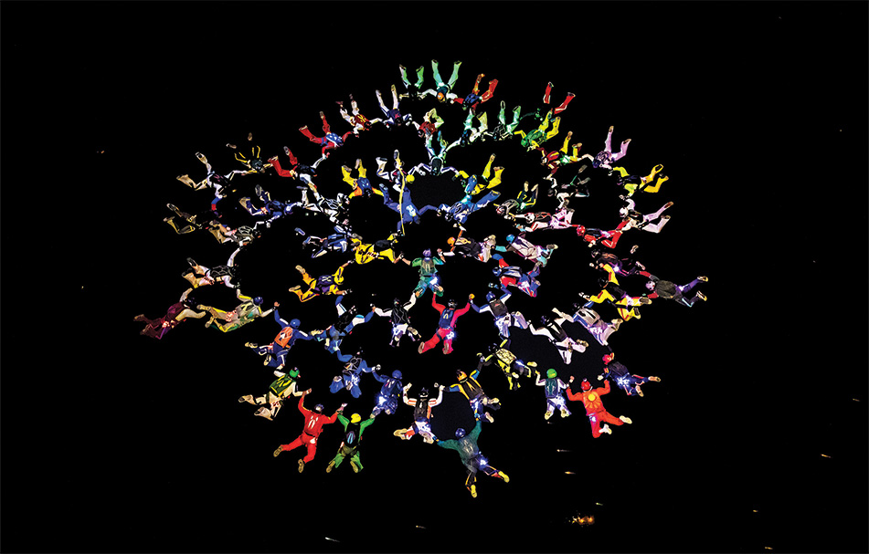 Jumpers make history with a 64-way night formation skydive over Skydive Arizona, Eloy. Photo by Laszlo Andacs.