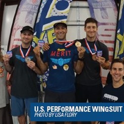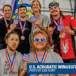 Soon after formation skydiving completed, wingsuiters flocked to Paraclete to compete for their spots on the U.S. Team. This year, acrobatic wingsuit flying drew only two teams, as some of the athletes planning to compete suffered injuries in the months leading up to Nationals. The two teams battled fiercely, with the Z-Hills Flamingos coming out on top, despite Flatspin-Off scoring perfect 300s on five out of seven rounds. An omitted sequence in round two by Flatspin-Off gave Z-Hills the advantage that it needed to take the gold, and only six points separated the two at the end of the competition. Both teams completed 24 grips on round three, setting a joint national record. Since one of the members of the Z-Hills Flamingos did not have an FAI Sporting License (required for records beyond the national level), Flatspin-Off alone broke the North American continental record of 17 grips set at the World Cup in August. Though only one team stood on top of the podium, both teams qualified to compete at the 2020 Mondial.