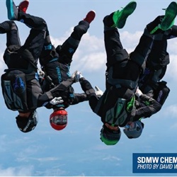 The formation skydiving events kicked off on September 12 with three classes of VFS. Four teams entered the open class. SDC Core, the reigning world champion, ran away from the pack, averaging 23.3 points and the right to represent the U.S. at the 2020 World Parachuting Championships in Tanay, Siberia. Skydive Arizona teams X-Force and Anthem finished with a 16.3- and 12.4-point average, respectively, securing the silver and bronze medals. SDMW Chemtrails, which came in fourth with a 9.1 average, showed the true spirit of competition. After a skydiving accident five months ago left team videographer Keith George in a wheelchair during the period when the team would normally train, the team—including George—defied the odds, overcame their challenges, attended the event and put in a strong performance.
