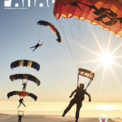 During the USPA National Skydiving Championships at Skydive Elsinore in California, videographer Cat Isgrigg shoots her canopy formation team, Elsinore Yahoooooos (Jesse DelBono, Carsten Cooper-Jensen, Robert Roberts and Lauren Rorick), as they compete in the 4-way rotations event.