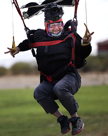 Make a habit of noting where people are during the jump, especially when things get a bit chaotic. You don’t need to constantly look around, but make mental notes when someone corks out or drops low. As a camera flyer, those are the people who can injure you. It takes practice to develop this kind of third sense.