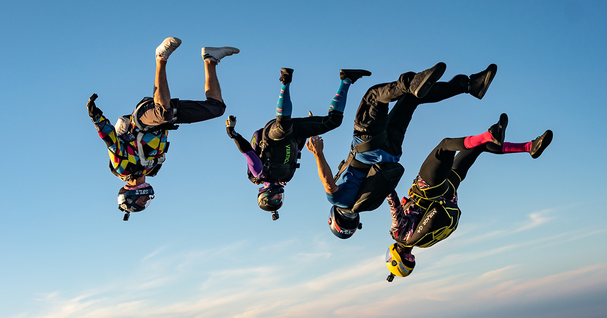 One of the most dangerous things when learning a new discipline is getting in over your head. If it’s your first upright attempt ever, maybe a 6-way is not for you. Keep the groups small and with people you trust to stay as close to on level with each other as possible. “On level” is the name of the game—it makes breakoff much safer when you know where everyone is going. The other issue I have seen too many times is deviating from the plan. Plan the dive and dive the plan. Everyone being on the same page contributes to the success of the dive and to everyone’s safety.