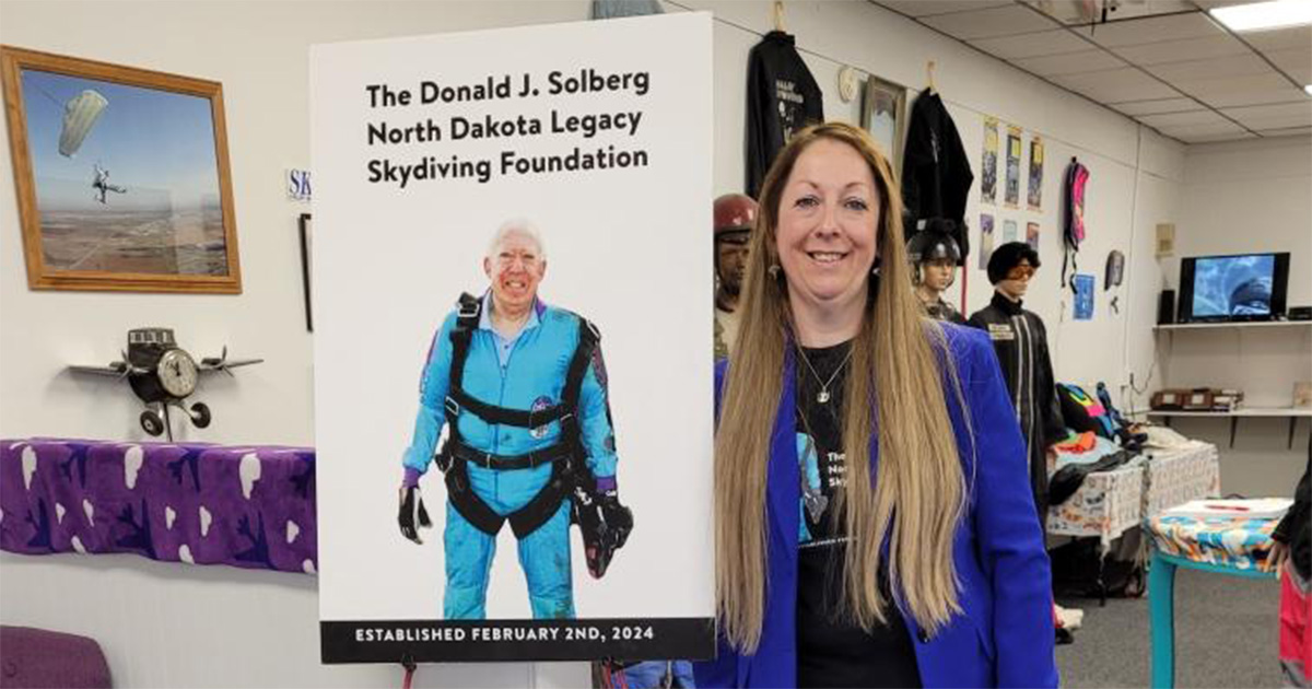 Megean Solberg established the Donald J. Solberg North Dakota Legacy Skydiving Foundation in honor of her father’s legacy and pioneering of the sport in the state of North Dakota. It offers one skydive per season to a first-time jumper. The foundation takes applications from April 1-30 and selects a recipient on May 15, with the hopes of the jump taking place on June 21, Don Solberg’s birthday. The first recipient, Lindsey Larsen, made her skydive on July 9, 2024.