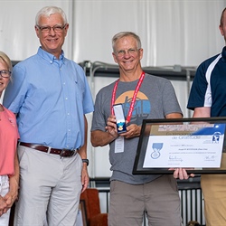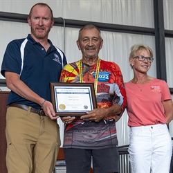 Following the Dobson presentation, Berchtold and Butcher welcomed FAI President Greg Principato to the stage. Principato flew to the event so he could bestow in person two very prestigious FAI awards on USPA members. The FAI chose the late Col. Joseph Kittinger, the legendary jumper who held the world record for high-altitude skydive (102,800 feet) for more than 50 years, to receive its FAI Air Sport Medal for “for outstanding services in connection with air sport activities like work in FAI commissions, organizing World and Continental Championships, training and educating new pilots, or for promoting aviation in general, especially with regard to young people.” Alan Eustace, who set the high-altitude record of 135,890 feet in 2014, accepted the medal on Kittinger’s behalf.