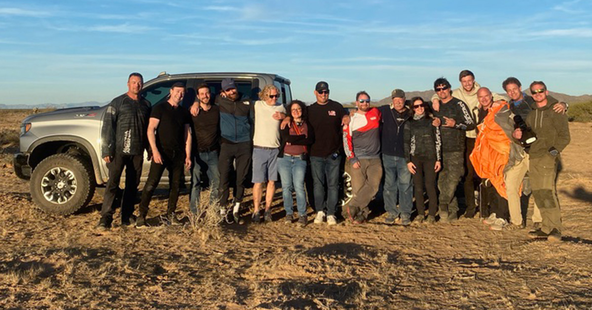 We were out in the desert, Joe was up in the plane with the car and our crew was on the ground with about 20 cameras, all of us looking up at a plane that was about to drop a car. The Skydive Arizona team was running around on radios calling out the timing, and Marah and I were just standing there. I remember looking at her and saying, “Oh my God, what have we done?”