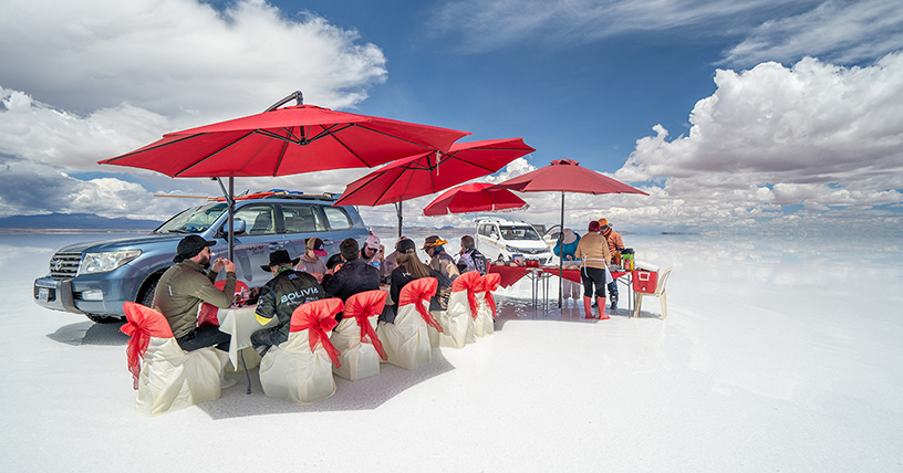 One of the highlights of the trip was the gourmet lunch set up right in the middle of the salt flats! The group enjoyed a full luxury dining experience with gorgeous views and then headed out to see the sights, which included giant salt sculptures and salt mazes in the middle of the flats. Even the hotels were constructed with salt embedded in the bricks.