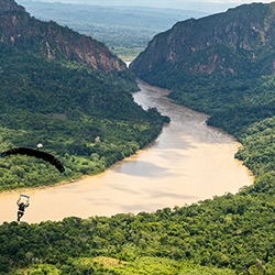 After conquering Uyuni, the group shifted its focus to the lush heart of the Bolivian Amazon. The jumps—carried out in special collaboration with nearby drop zone Paracaidismo Santa Cruz—demanded full focus on accuracy. Participants navigated through dense jungles and winding rivers, and landed their parachutes just meters away from curious caimans and piranhas lining the riverbanks. Rescue boats were standing by and ready to assist. The distinct sounds and sights of the Amazon (not an everyday DZ experience) amplified the excitement of each jump.