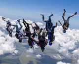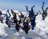 In the photo above, jumpers fly a vertical formation during the LSD Big-Way Head-Down Camp. Photo by Daniel Angulo.