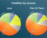 In each of the following categories, we listed the number of fatal accidents for the year followed by the percentage of the annual fatalities in that category. Following that is the average percentage for the previous 20 years, which allows us to see how last year stacked up against the previous two decades.