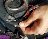 Many manufacturers run their hard housings under the mudflaps to protect them and keep them out of the way. This particular hard housing snapped just above the mudflap fabric. The jumper’s best guess was that a packing weight (in this case, a weight plate such as those used on barbells) fell on the housing at some point during the packing process, which kinked it and caused the break. The break in the hard housing snagged the cutaway cable and made it impossible to cut away. Had this jumper not caught the problem before having a malfunction that required a cutaway, the results could have been catastrophic.