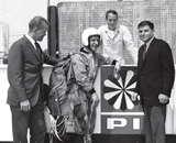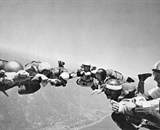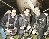 Kevin Brady, Dr. Frank Guzman and Fred Wild of the Long Island Skydivers pose after a New Year’s jump. Though they exited in 1965, they landed in 1966, and a bottle of champagne took the place of the baton.