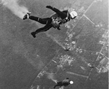 The U.S. Army Parachute Team practices with smoke high above Orange, Massachusetts. Photo by Joe Gonzales.