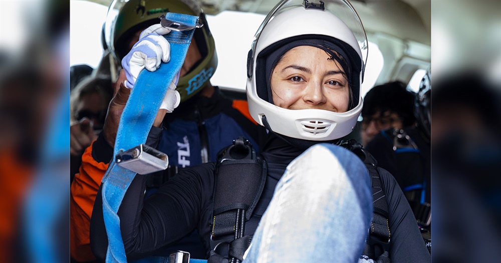 At Skydive Arizona in Eloy, (clockwise from “driver”) Carlo Manuel, Dan Baker, Sam Laliberte and Joel Tremblay perform a car-drop stunt to promote Cleared Hot’s Vet Boogie.
