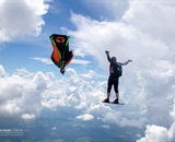 Wingsuit flyer Craig Lambton carves around skysurfer Kyle Batchelor during Shredfest at Cleveland Skydiving Center in Garrettsville, Ohio.