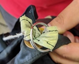 “Keep an Eye Out” on page 66 of the November issue of Parachutist contained incorrect information. A split-ring connection system for a pilot-chute bridle is correct on some rigs. Federal Aviation Administration Master Rigger Mark Baur of Parachute Magic, who has worked for manufacturer Rigging Innovations, said, “Rigging Innovations has for years used split rings instead of Rapide links in this application. My experience has been that a split ring distributes the loads better and results in less wear and tear on the butterfly tabs. The ring needs to be rotated so the split is inside one of the tabs, and it needs to be tacked to keep from rotating.”