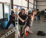 At Skydive Arizona in Eloy, (clockwise from “driver”) Carlo Manuel, Dan Baker, Sam Laliberte and Joel Tremblay perform a car-drop stunt to promote Cleared Hot’s Vet Boogie.