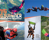 At Skydive Arizona in Eloy, (clockwise from “driver”) Carlo Manuel, Dan Baker, Sam Laliberte and Joel Tremblay perform a car-drop stunt to promote Cleared Hot’s Vet Boogie.