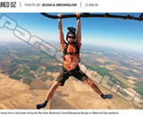 Brian Genereux hangs from a helicopter during the Bay Area Skydiving’s Grand Reopening Boogie on Memorial Day weekend.