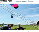 Having just landed, a tandem pair watches another pair come in on its final approach at Skydive Orange in Virginia.