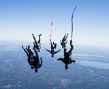 At Skydive Arizona in Eloy, (clockwise from “driver”) Carlo Manuel, Dan Baker, Sam Laliberte and Joel Tremblay perform a car-drop stunt to promote Cleared Hot’s Vet Boogie.