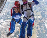 At Skydive Arizona in Eloy, (clockwise from “driver”) Carlo Manuel, Dan Baker, Sam Laliberte and Joel Tremblay perform a car-drop stunt to promote Cleared Hot’s Vet Boogie.
