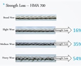 HMA has similar properties to Vectran, but with smaller pack volume and slightly less drag. It has a softer feel than Vectran and is susceptible to abrasion and snagging, especially in sandy environments.