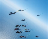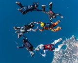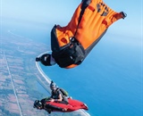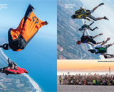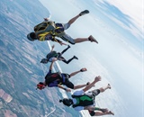 At Skydive Arizona in Eloy, (clockwise from “driver”) Carlo Manuel, Dan Baker, Sam Laliberte and Joel Tremblay perform a car-drop stunt to promote Cleared Hot’s Vet Boogie.