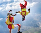 Anais Zanotti and Salim Rubiales move in to dock during a freefly jump at Skydive Miami in Homestead, Florida.
