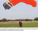 Practice Flares: Simulate a landing by flaring the parachute. This will require more strength than a typical flare, as one arm is doing all the work. Remember to push your hand downward during the flare rather than pulling. The goal is to the keep the wing level during the flare. To accomplish this, move your hand in a straight line close to your body, passing your hand between your eyes, past your sternum and belly button to between your thighs.