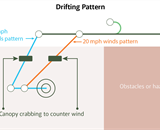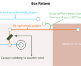 Another way of adjusting for higher winds that is gaining popularity is called drifting. A drifting pattern allows canopy pilots to drift with the wind on the crosswind (base) leg rather than flying into the wind as jumpers do with the standard box patterns. A drifting pattern also keeps jumpers upwind of their landing target for most of their pattern, which give a jumper more time to discern wind strength or direction changes. This pattern allows your downwind leg to always be the same parallel distance from the landing target rather than having the downwind leg move closer to the landing target as in the standard box pattern. Jumpers using a drift pattern can mix with jumpers using a traditional box pattern as long as everyone maintains vertical separation. The two patterns will converge as the jumpers turn onto their final legs. Consult with your local S&TA before trying a drifting pattern in your landing area.