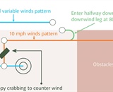 We’ll need to make some generalizations about landing patterns and round a few numbers to make the math a little easier. Each canopy pilot needs to know the flight characteristics of their canopy and adjust the models to fit their circumstance.