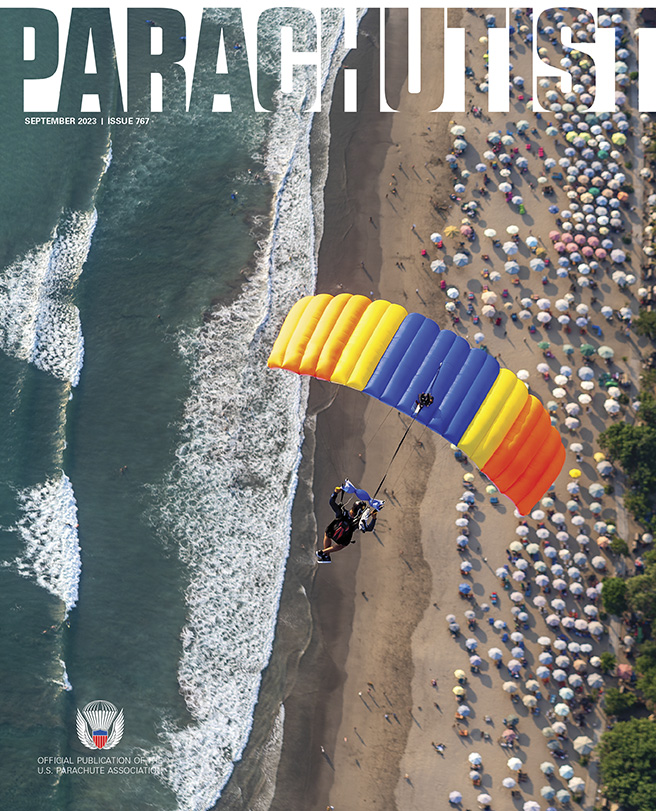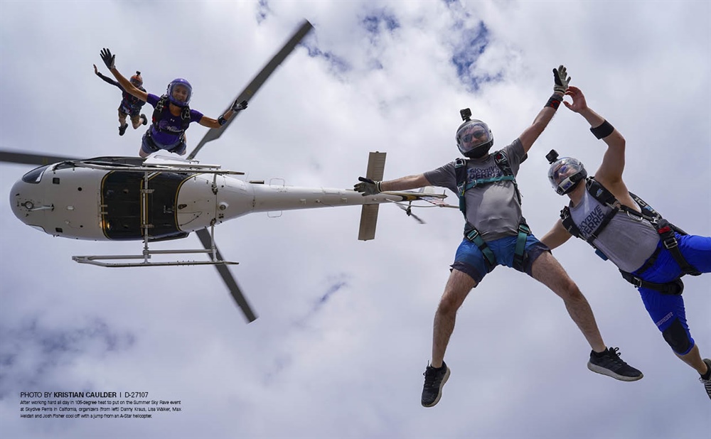 At Skydive Arizona in Eloy, (clockwise from “driver”) Carlo Manuel, Dan Baker, Sam Laliberte and Joel Tremblay perform a car-drop stunt to promote Cleared Hot’s Vet Boogie.