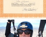 At Skydive Arizona in Eloy, (clockwise from “driver”) Carlo Manuel, Dan Baker, Sam Laliberte and Joel Tremblay perform a car-drop stunt to promote Cleared Hot’s Vet Boogie.