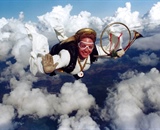 Robert Capen, the “Skydiving Clown,” smiles high in the skies near Santa Barbara, California.