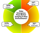 Only 18 percent of respondents to this survey question said that they always make emergency plans before jumping in new environments. Fourteen percent said they never make such plans, and the other 68 percent landed somewhere in the middle. (Bear in mind that the biases, positive factors and negative factors discussed earlier could also be relevant to these results.) We can identify and analyze the illusion of safety and safety lapses that emerge from complacency by asking the following questions: