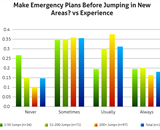 The survey also asked how regularly the respondents developed emergency plans when jumping in new environments. Although geared toward BASE jumpers (who may be jumping in extremely remote locations), the question is also relevant to those jumping from aircraft. In the broad sense, it asks whether the jumper seriously considers how something could go wrong and what they would do about it, and it speaks to how the jumper engages with new and evolving risks. For a skydiver, this could include items such as how seriously they practice emergency responses to malfunctions, plan for unknown factors on a big-way or prepare to enter a new jumping discipline.