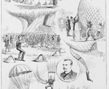 Though Baldwin’s performance in California was widely reported, other show balloonists did not take notice until Baldwin came farther east and made another descent on July 4, 1887, in his hometown of Quincy, Illinois. As a result, the whole city of Quincy was engulfed in a parachuting craze, led by Tom Baldwin and his brother Sam. Other show balloonists suddenly took note, and before 1887 ended, Baldwin had nearly a dozen imitators—though several used a design in which they were suspended by the parachute lines during the whole ascent and used a rope connected to a blade to cut the chute free from the balloon. The result was far less dramatic than Baldwin’s configuration of the parachute suspended from the side of the balloon, which separated via a breakaway string after he jumped.
