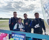 The members of one recently formed team are in a long-distance relationship. Alex Bingham lives in Kentucky and has 230 jumps. Sarah Dillman lives in Wisconsin and has the most jumps of the team: 825. Tommy Fitts lives in South Carolina and has 215 jumps. Mitch Rufer lives in Illinois and has 150 jumps. They met through various SDC Rhythm XP events and workshops and decided to form a team to compete at the beginner 4-way FS test event at the 2021 USPA Nationals and other competitions throughout the year.