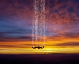 Team Fastrax makes a pyrotechnic skydive at sunrise at GoJump Oceanside in California.