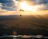 Matthew Fry flies his Performance Designs Valkyrie into the sun during the February 2020 Vertical Sequential Challenge at Skydive Sebastian in Florida.