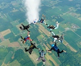 Dave Lunardi releases the ashes of longtime jumper Terry Zimmerlin, D-12981, at the Cleveland Skydiving Center in Garrettsville, Ohio.