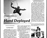 Skydivers found all kinds of ways to misroute bridles, twist belly bands and leave things unfastened. Some simply forgot where the handles were. (This was the ’70s.) Not until the late-’80s did most everyone settle on the currently popular bottom-of-container pouch that actually first appeared on tandem rigs. BOCs took a while to catch on because jumpers had a hard time getting used to the idea of not being able to see the deployment handle—similar to the piggyback’s reserve-out-of-sight dilemma.