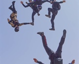 At Skydive Arizona in Eloy, (clockwise from “driver”) Carlo Manuel, Dan Baker, Sam Laliberte and Joel Tremblay perform a car-drop stunt to promote Cleared Hot’s Vet Boogie.