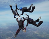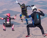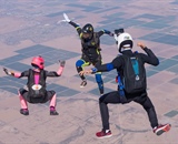 Eleven teams competed in mixed formation skydiving, with a nice spread of three in intermediate, five in advanced and three in open. SDMW Leftovers from Skydive Midwest took first in intermediate class with a total score of 24.0 and an average of 4.0 per round, followed by SDMW AeronautX in second and Team Scorpio in third. AZ Sole Sisters from Skydive Arizona finished first in advanced with a total score of 75.0 and an average of 9.4 per round, followed by Wrong Box in second and Bromo Sapiens in third. In MFS open, FliteShop from Skydive Arizona took first place with a total of 115 points and an average of 14.4, followed by Revolutionary War and Apippany in second and third, respectively.