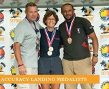 The competition started with the classic event: accuracy landing (both individual and team). A total of 17 competitors and two guests took to the skies and put on a great display of skill, landing their canopies on the smallest of targets. The USA’s newest accuracy landing competitor, Ehab Mahmoud (who recently became a U.S. citizen), took bronze with a score of 29 cm. Jimmy Drummond took the silver with 23 cm. And this year’s U.S. Accuracy Landing Champion is Cheryl Stearns, who put on a masterful performance in the discipline with a total score of 10 cm. Her amazing performance broke the U.S. Record for Lowest 10-Round Accuracy Landing Score in both the general and female categories (previously 12 cm and 16 cm, respectively). What an incredible achievement!