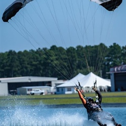 Finishing up the parachuting events was the advanced category of CP freestyle. Five competitors made the competition super fun. Fifth-place finisher Riley Marshall yelled, “Cannonball!” while plunging into the pond, and Laura Golly made her own homemade sponsorship shirt. Redfield finished in the top slot with a perfect 300, while Evan Pritchard followed with a 166.914. The fight for third was tight with Justin Anderson (127.019) coming close, but not close enough to beat out Golly (128.426).