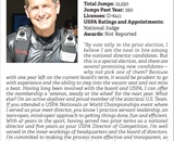 Following are photographs, candidate profiles and biographies for those who have offered to fill the one vacant national director seat on the USPA Board of Directors and serve the remainder of the term. It is your responsibility as a USPA member to vote for the person you feel is best qualified to represent you.