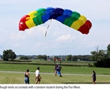 The Maytown Sport Parachute Club held its annual Fun Meet on August 17, about two months later than usual due to poor weather in June. Club Training Officer Ann Ross and Club Treasurer John Stepanchak were the judges. After the competition, participants enjoyed a potluck picnic (with the club providing burgers and sausages), and a band provided entertainment.