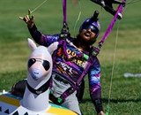 At Skydive Arizona in Eloy, (clockwise from “driver”) Carlo Manuel, Dan Baker, Sam Laliberte and Joel Tremblay perform a car-drop stunt to promote Cleared Hot’s Vet Boogie.